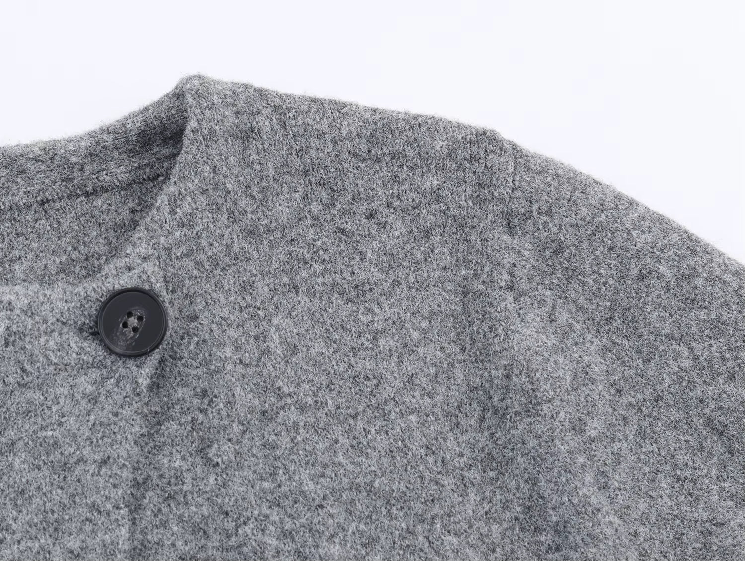 👗 Strak silhouet + vleermuismouw – Een clean, effen look met een subtiele split voor gecontroleerde elegantie.
